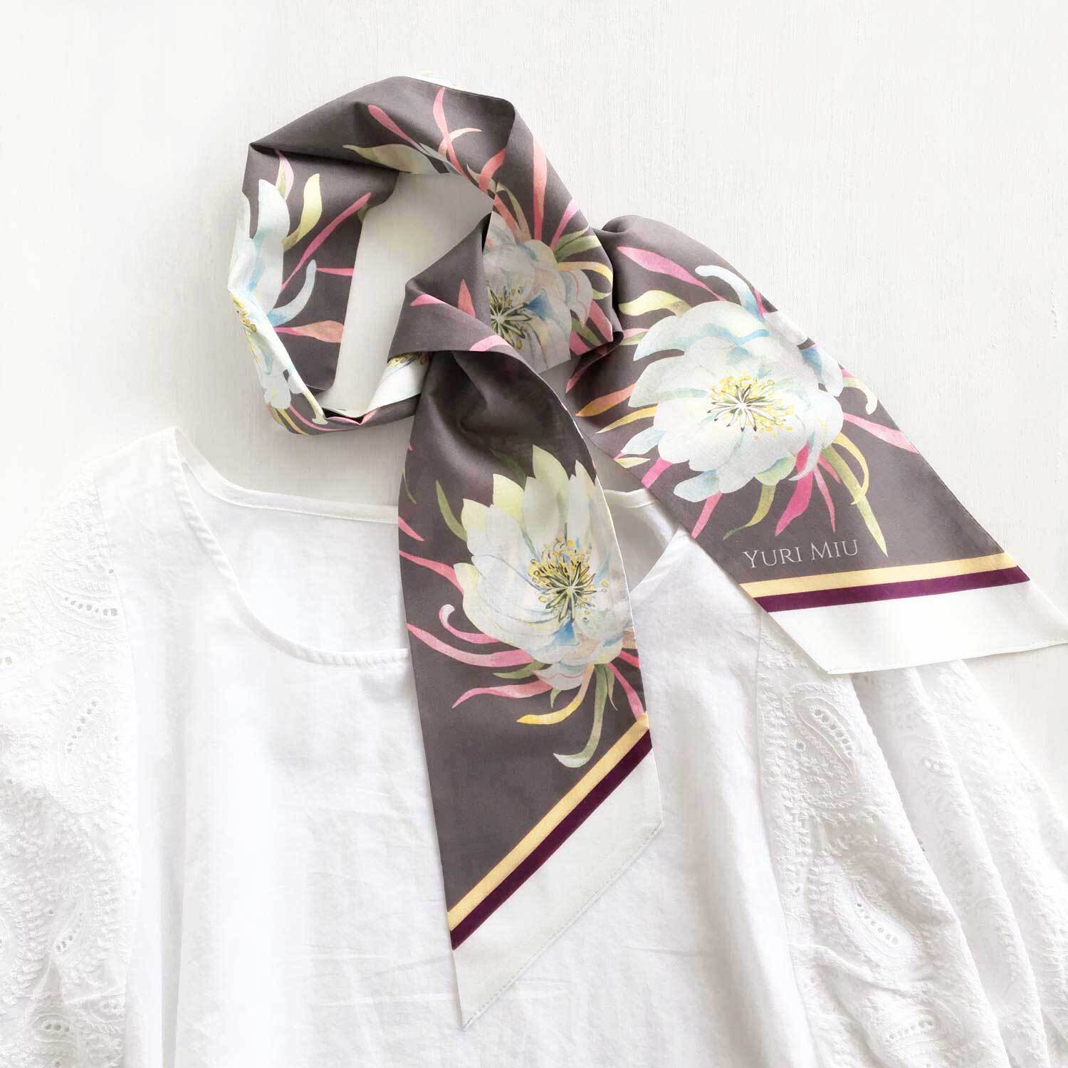 スカーフ|月下美人・大人の柔らかグレー(細長フォルム / コットン100%)