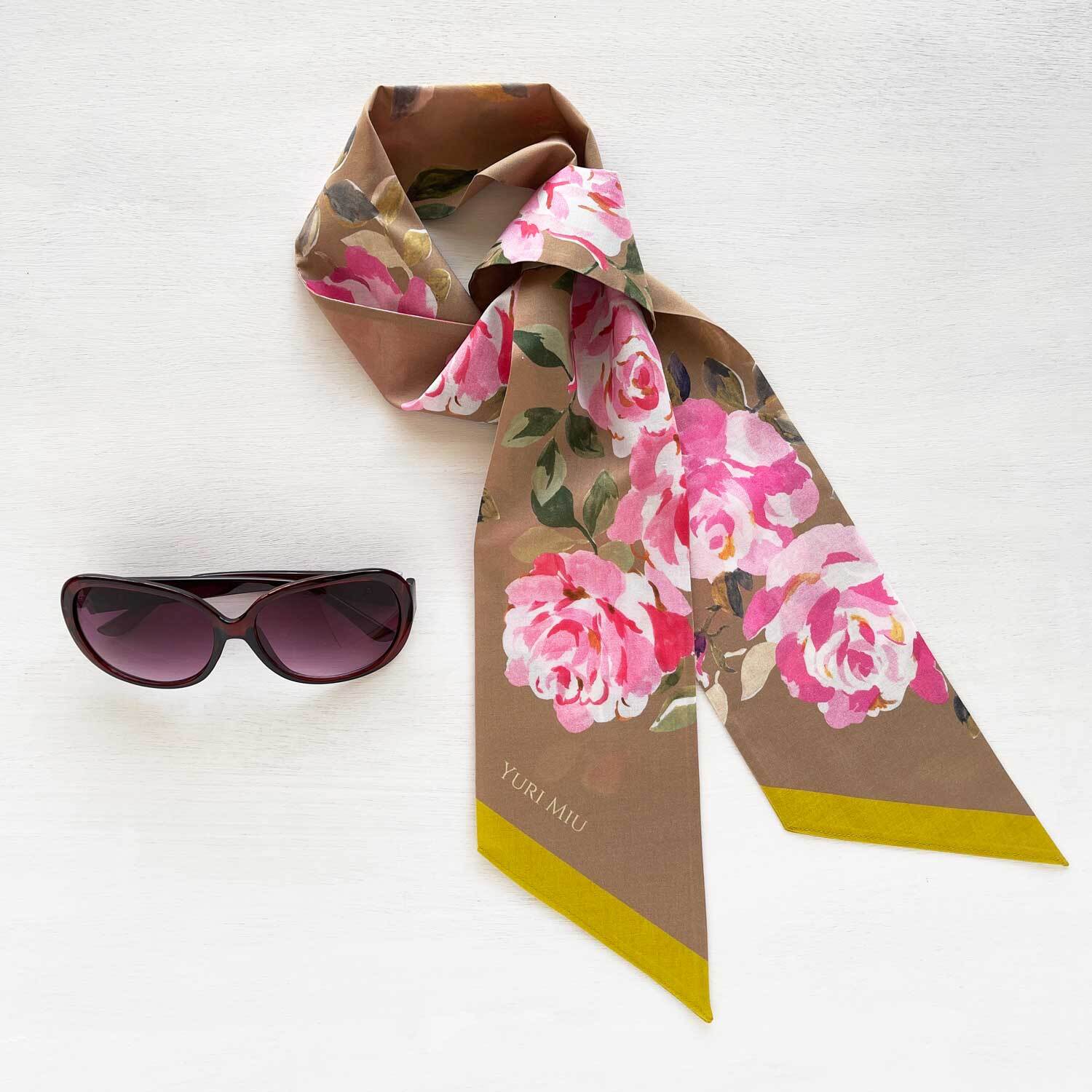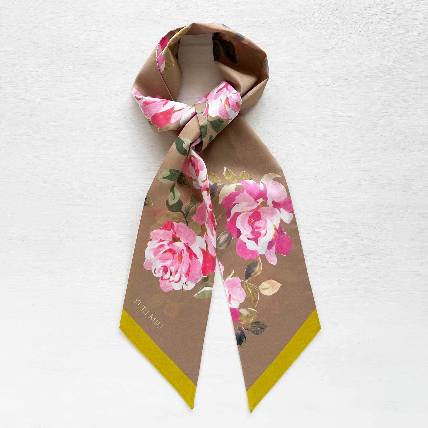ツイリースカーフ|ローズガーデン・大人のペールブラウン(コットン)
