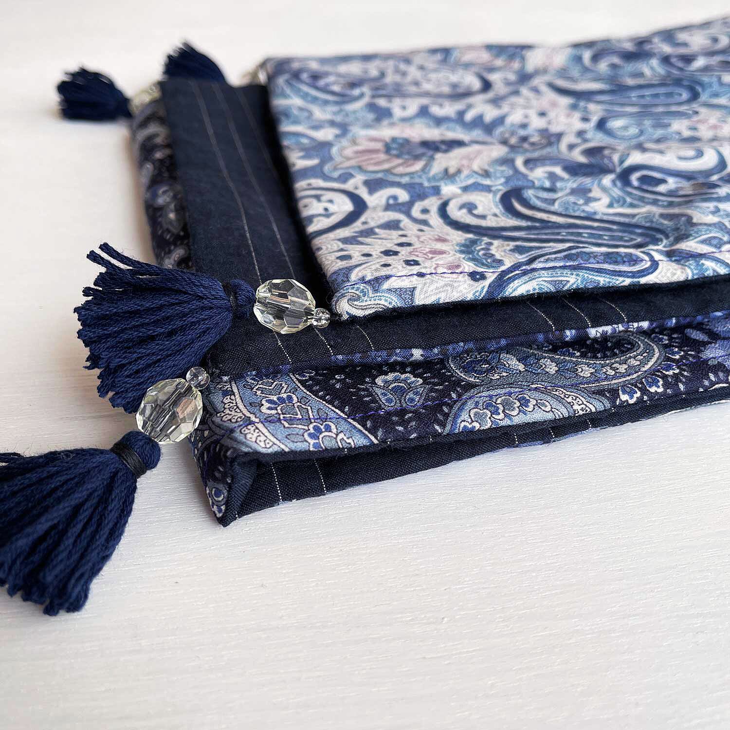 ミニストール |ふんわりキルト ❤︎ シルクコットン & 綿麻|ペイズリー柄(ネイビー)